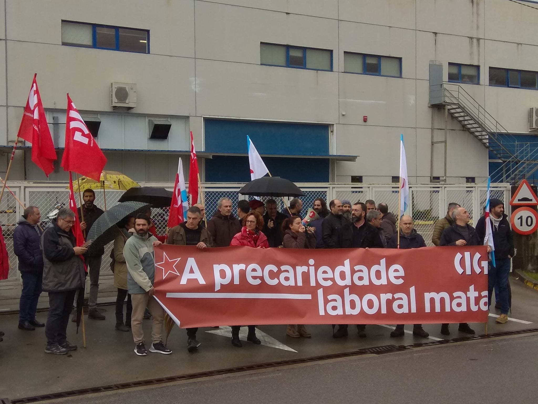 Ao remate da mobilización, o secretario comarcal da CIG-Industria de Vigo, Xulio Fernández, tomou a palabra para asegurar que a sucesión de accidentes laborais de tanta gravidade nesta empresa “non poden ser casualidade”.