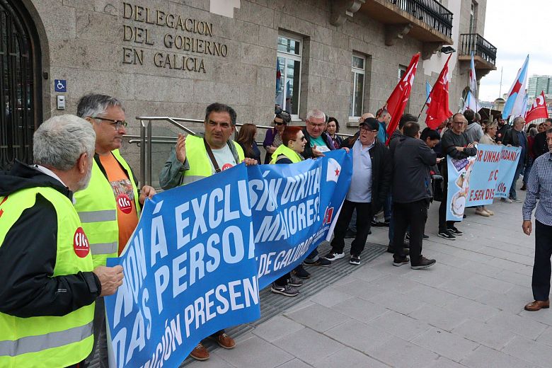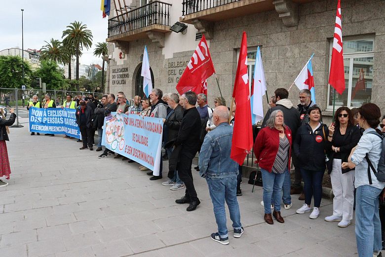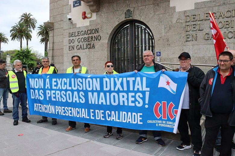 No marco da campaña en demanda de atención presencial e por unha atención á cidadanía de calidade e sen discriminación, a CIG-Administración Pública, xunto co colectivo de persoas xubiladas e pensionistas da CIG, mobilizouse este mañá na Coruña diante do edificio da Delegación do Goberno. Na protesta denunciouse que "coa escusa da transformación dixital e a cita previa a parte máis vulnerábel da cidadanía está a ser expulsada sen pudor das nosas administracións e servizos públicos”.