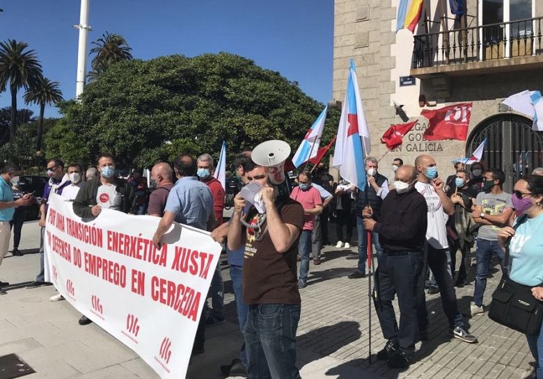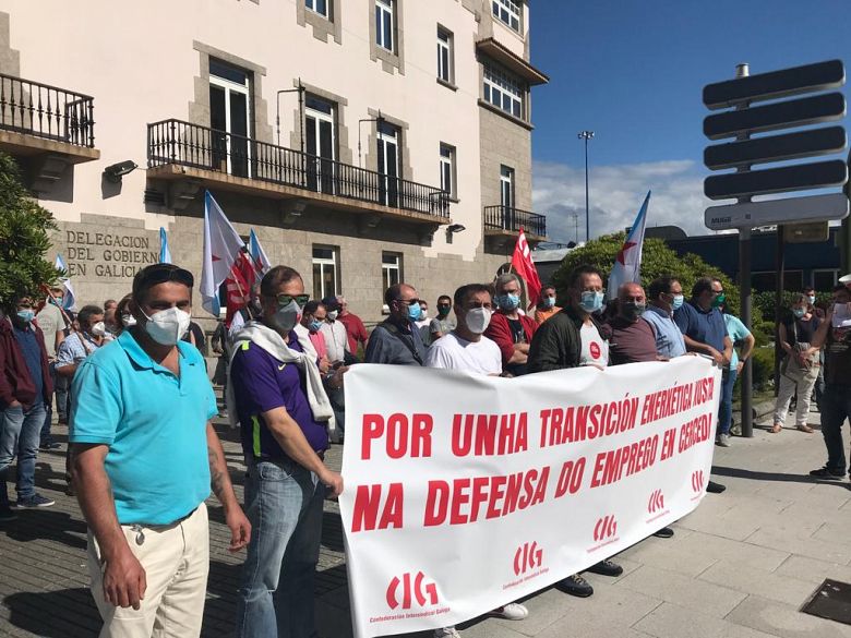 A CIG realizou unha esta tarde na Delegación do Goberno na Coruña para demandar do Goberno español e da Xunta unha transición xusta e galega, así como alternativas para o persoal afectado polo peche da central de Meirama. Esta mobilización foi acordada na asemblea de traballadores e traballadoras das auxiliares da central celebrada o pasado venres, na que se abordou a falta de solucións para este persoal, a pesar da proximidade do peche efectivo da central, prevista para dentro dun mes.