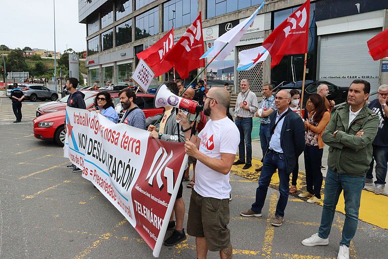 Traballadoras e traballadores de Teleperformance concentráronse este xoves diante das oficinas que a empresa ten no Polígono da Agrela na Coruña en defensa da continuidade dos 118 postos de traballo no servizo de atención telefónica á clientela de Unión Fenosa (Grupo Naturgy). A sección sindical da CIG denuncia que tras máis de 25 anos prestándose dende este centro de chamadas, a compañía eléctrica vai deslocalizar o servizo a partir do mes de setembro, cando pasará a ser realizado en máis dun 80% dende Colombia, deixando só 20 persoas na Coruña.