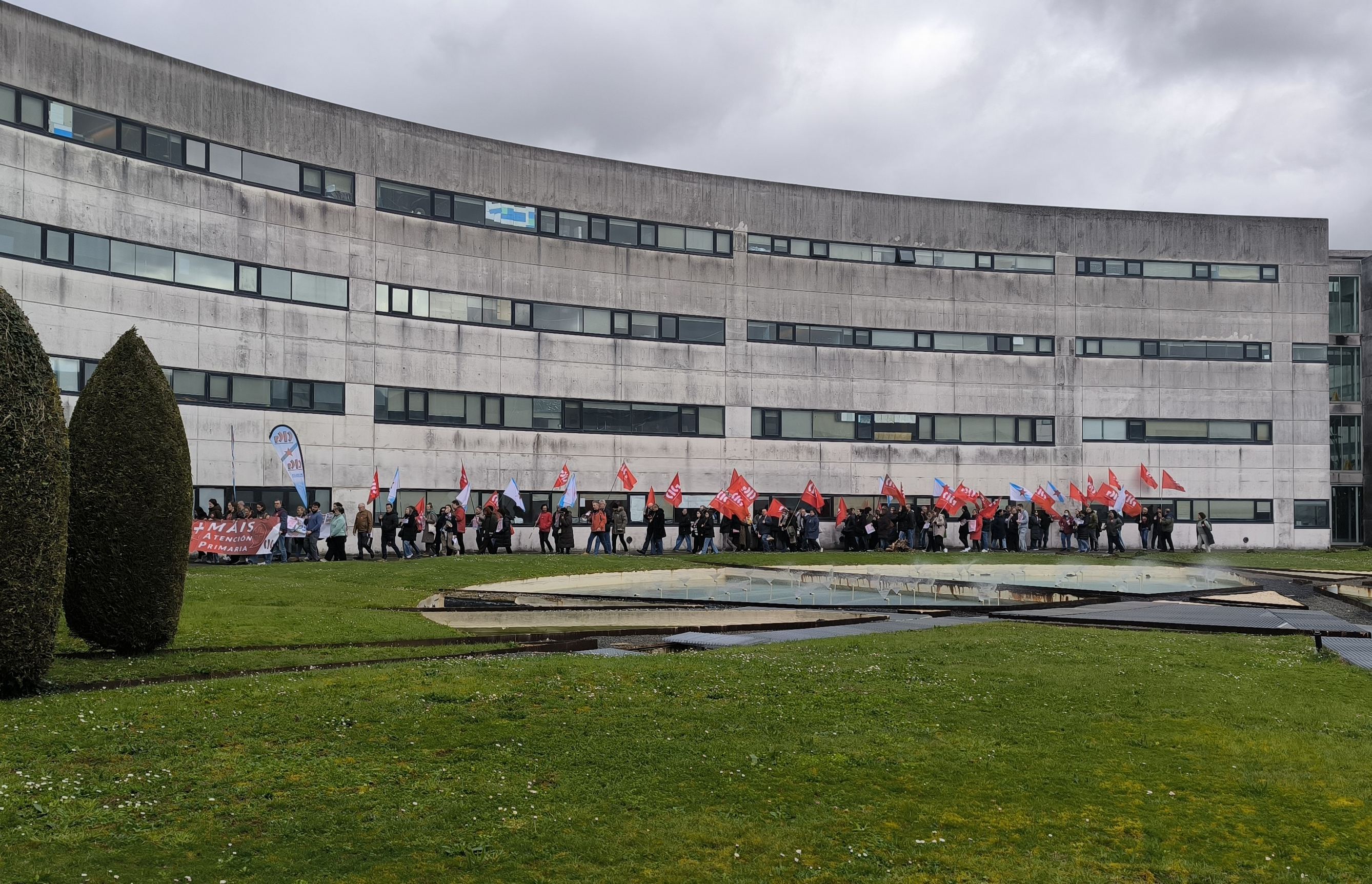 A CIG-Saúde mobilizouse este xoves na Consellaría de Sanidade para exixir medidas urxentes e reais fronte a situación límite da Atención Primaria que afecta tanto ás condicións laborais como a calidade asistencial que se presta. Na protesta, que se realizou no marco da xornada de folga convocada pola CIG para todas as categorías dos centros de saúde e PAC, denunciouse a falta de persoal que se arrastra dende hai anos, a sobrecarga laboral, as axendas imposíbeis e o incremento da burocracia que deixa menos tempo para atender as persoas “como merecen”.