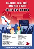 Baixo o lema “Traballo, igualdade e salarios dignos nunha Galiza con dereitos”, a CIG conmemorou este 10 de Marzo, Día da Clase Obreira Galega, con mobilizacións nas sete cidades e en Vilagarcía para lembrar as loitas protagonizadas pola clase traballadora galega en 1972, durante as que foron asasinados en Ferrol pola policía franquista Amador Rei e Daniel Niebla. Unha data significada para o movemento obreiro galego na que reivindicamos a vixencia da loita contra a precariedade, por uns salarios xustos e por defender o dereito á negociación colectiva en Galiza.