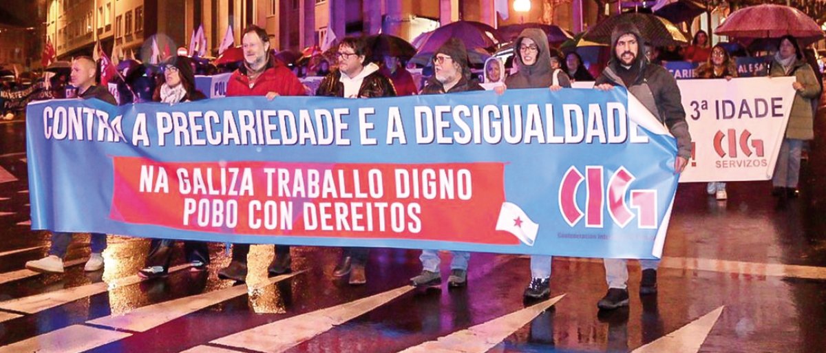 Denunciou que a clase traballadora galega sufre precariedade, baixos salarios e un modelo socioeconómico neoliberal “imposto a través das sucesivas reformas laborais”. Referiuse Carril tanto a reforma de 2012 aprobada polo Goberno de Mariano Rajoy como a aprobada en 2021 polo actual Goberno, “xa que non derrogou a do PP, senón que facilita normalizar a precariedade e a pobreza laboral que se manifesta na contratación fixa-descontinua e a tempo parcial”.