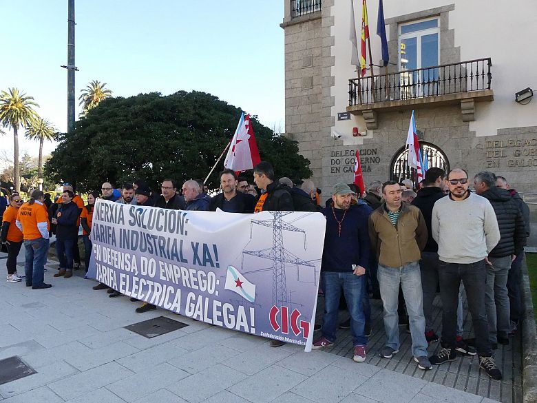 Delegados e delegadas da CIG concentráronse este xoves diante da Delegación do Goberno na Coruña para esixir solucións para a industria electrointensiva e apresurar a creación dunha tarifa industrial estábel, predicíbel e competitiva que recoñeza o estatuto específico deste tipo de empresas con grandes consumos de enerxía. A urxencia desta demanda, subliñou o secretario xeral da CIG, Paulo Carril, segue a estar condicionada pola contra atrás para evitar a execución dos despedimentos na fábrica de Alcoa, que remata o 1 de xullo, e polo ERTE que Ferroatlántica acaba de formular.