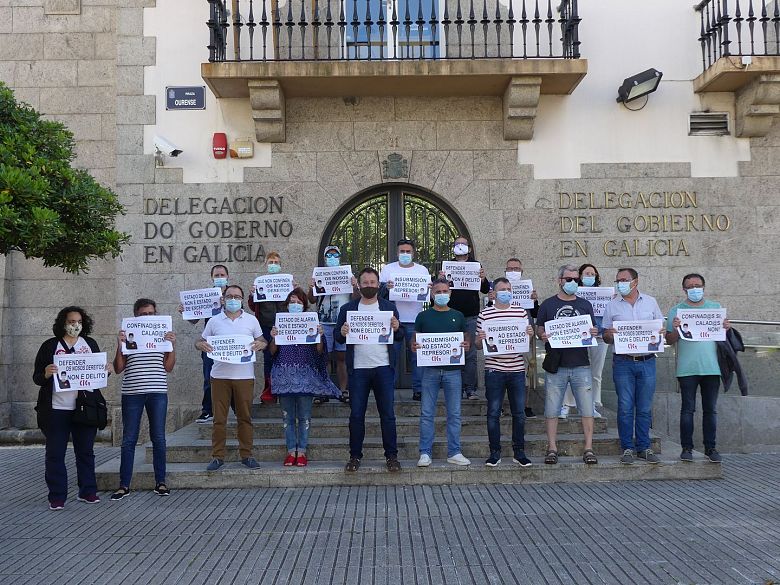 "O primeiro que hai que salientar é que no estado de alarma non cabe a suspensión do dereito fundamental de reunión, recoñecido na constitución e no ordenamento xurídico", destacou o secretario xeral da CIG, Paulo Carril, durante a protesta deste venres na Delegación. Xunto a isto, criticou a arbitrariedade coa que a Administración actúa contra da CIG, tendo en conta "que se propón sanción a persoas que nin sequera participaron nas concentracións".