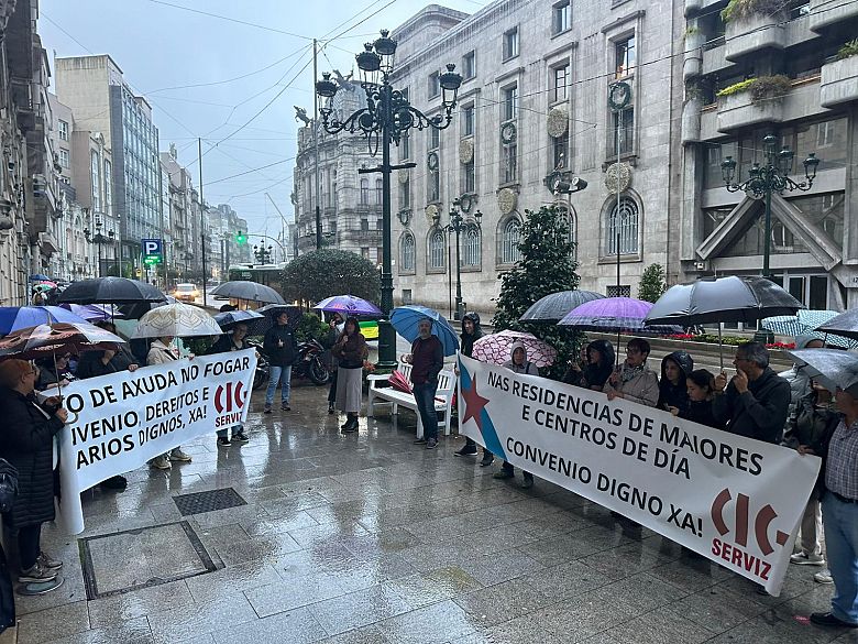 Dende a CIG-Servizos lembran que as empregadas do sector de coidados levan meses mobilizándose ante a situación de parálise dos seus convenios colectivos, xa que as patronais néganse a negociar “coa sorprendente complicidade da conselleira” a pesar de que a Xunta é a máxima responsábel da atención ás persoas dependentes, “un sistema que está a ser desmantelado pola Administración galega e polas as empresas privadas”.