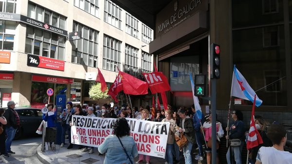 A federación de Servizos da CIG continuou onte coa súa campaña para reclamar o pago do IPC de 2021 ao persoal dos Servizos de Axuda do Fogar (SAF) e en demanda dun convenio colectivo que dignifique as condicións laborais do sector. A central sindical desenvolveu unha concentración diante da delegación da Xunta en Ourense, na que aproveitou para denunciar a precariedade que padecen as traballadoras/es dos SAF.