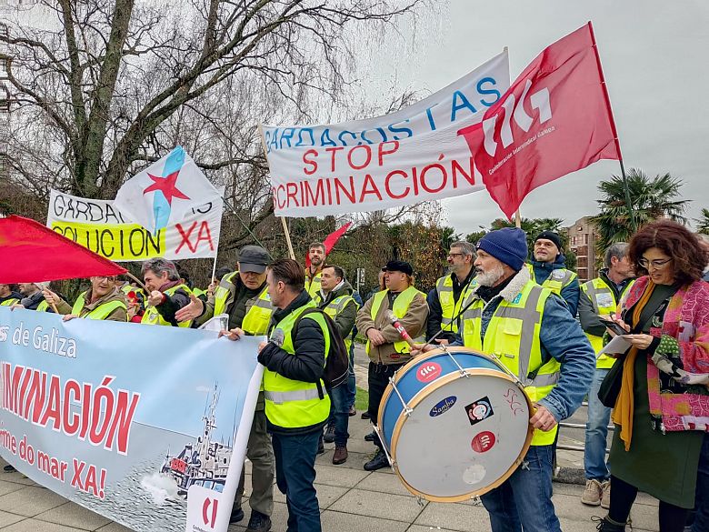 Gardacostas de Galiza continúan coas mobilizacións para reclamar a súa inclusión no réxime especial do Mar, do que están excluídos pola súa condición de persoal funcionario. Este xoves levaron as súas reivindicacións até ás portas da Xunta de Galiza onde mantiveron un encontro coa conselleira do Mar, Rosa Gallego, á quen lle reclamaron que faga as xestión oportunas para corrixir esta discriminación.