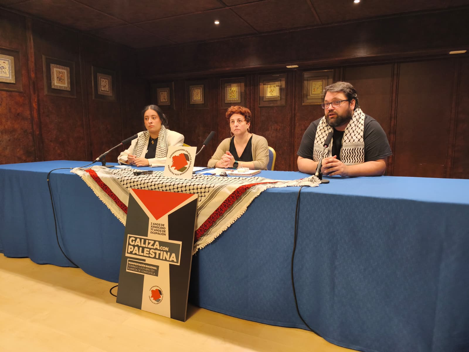 Representantes da Coordinadora de Solidariedade Galega con Palestina compareceron esta mañá en rolda de prensa para anunciar a convocatoria dunha manifestación nacional o vindeiro día 5 de outubro, con saída ás 12:00 horas da Alameda compostelá, baixo o lema "2 anos de xenocidio e 77 anos de ocupación", coincidindo co segundo ano da barbarie xenocida de Israel en Palestina. Como antesala están convocadas concentracións en 42 localidades galegas para o vindeiro día 22 de setembro.