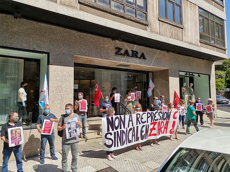 A sección sindical da CIG en Zara na provincia da Coruña mobilizouse este xoves diante dunha tenda de Santiago para denunciar publicamente a represión sindical que está a exercer o grupo Inditex, nomeadamente contra da presidenta do comité provincial, Carmiña Naveiro. Unha persecución contra as traballadoras e as súas representantes iniciada tras manifestar a súa oposición á modificación unilateral das condicións laborais sen negociación previa e impedindo o dereito á conciliación.