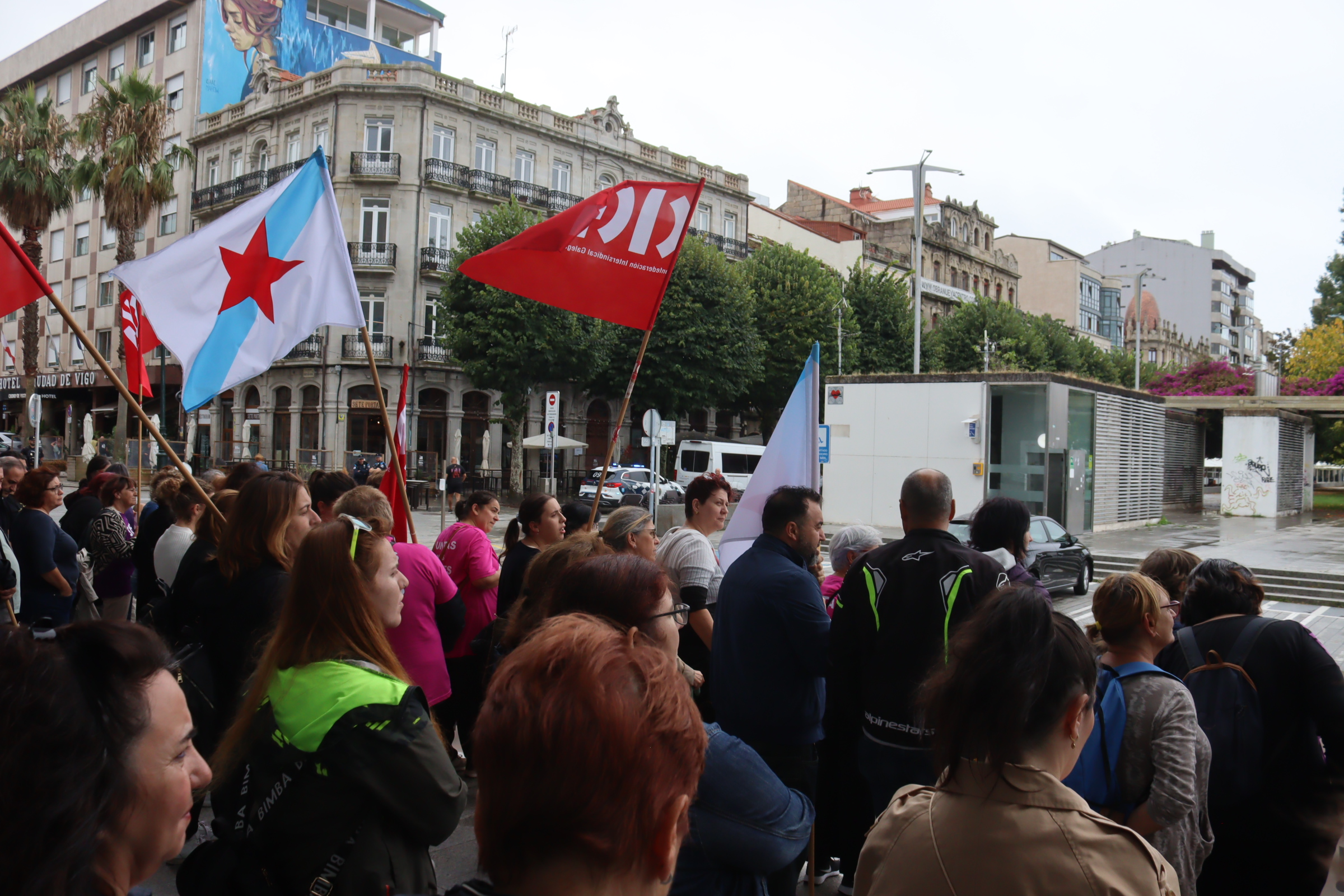 En Vigo, aproveitando a presenza da conselleira de Política Social, Fabiola García, as traballadoras trasladaron as súas protestas até a Cidade da Xustiza, onde a responsábel autonómica fixo unha visita á escola infantil. Porén, como vén sendo habitual, a conselleira evitou achegarse ás traballadoras para escoitar as súas demandas nin se interesou pola súa situación.