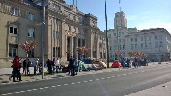 Arredor de 20 tendas están listas diante da Autoridade Portuaria da Coruña para a acampada que, entre hoxe e mañá, realiza a Comisión Aberta pola Defensa do Común (da que a CIG forma parte) para esixir a devolución gratuíta dos terreos da Solana e o Hotel Finisterre, todos os peiraos, o cárcere e os terreos do campo da Estrada. Baixo o lema "A Coruña non se vende", reclaman recuperar para o pobo o que historicamente é da cidade.