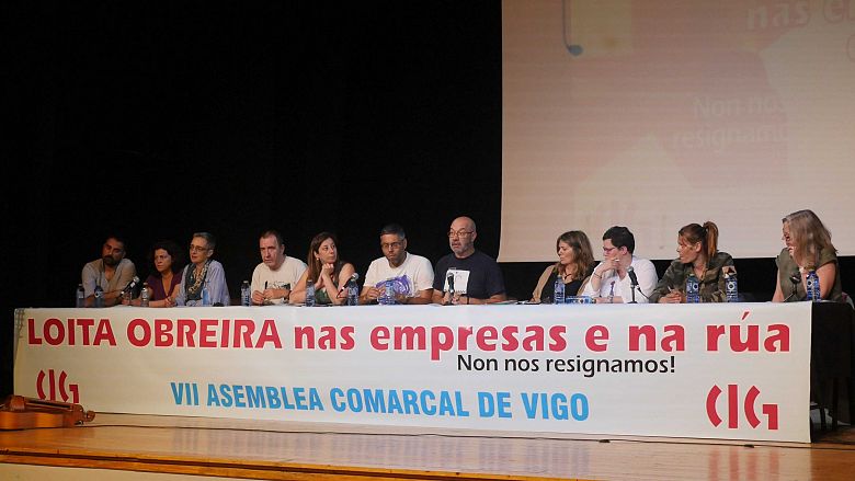 Para rematar, a modo de resume citou o lema baixo o que se celebrou o recente VII Congreso Confederal: “Coa CIG somos máis fortes”, que relacionou co escollido para este proceso comarcal pola Unión Comarcal de Vigo: “Loita obreira nas empresas e na rúa. Non nos resignamos! Por unha Galiza ceive e sen explotación”.