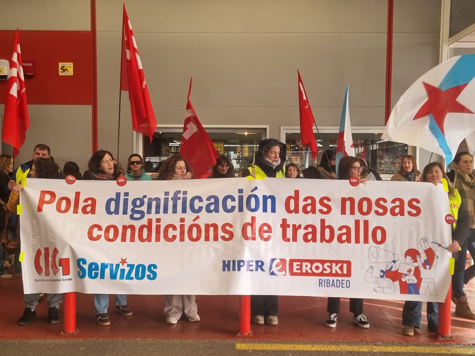 Amplísimo seguimento da folga en Vegalsa-Eroski para reclamar condicións laborais e salariais dignas