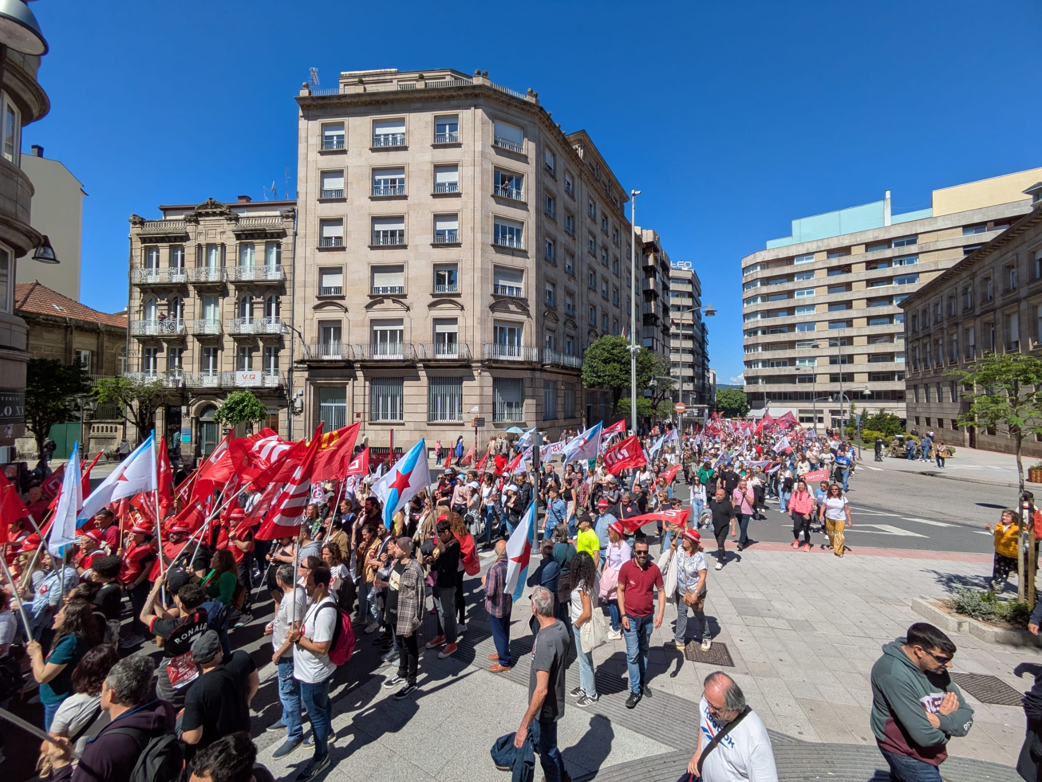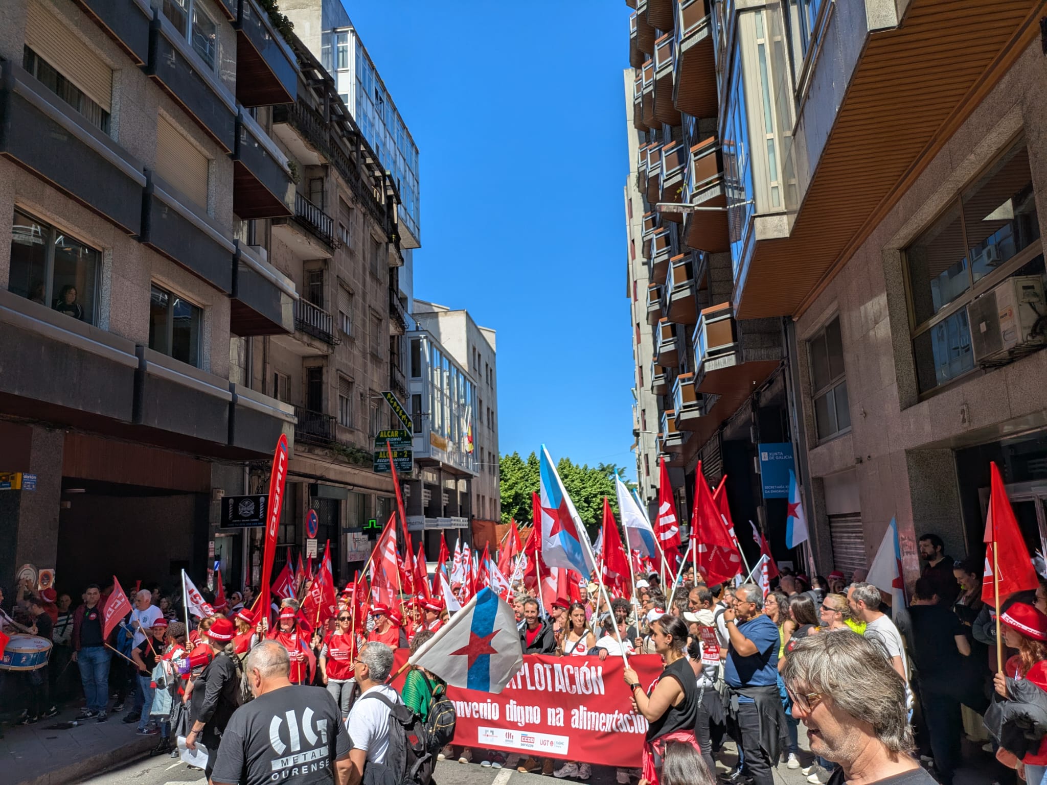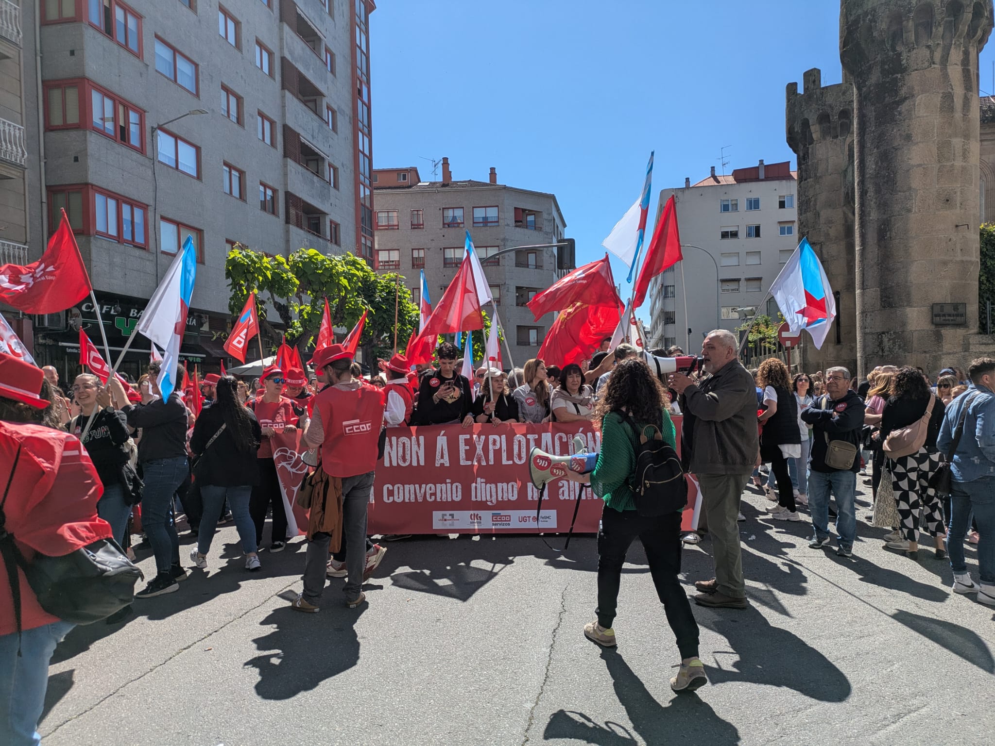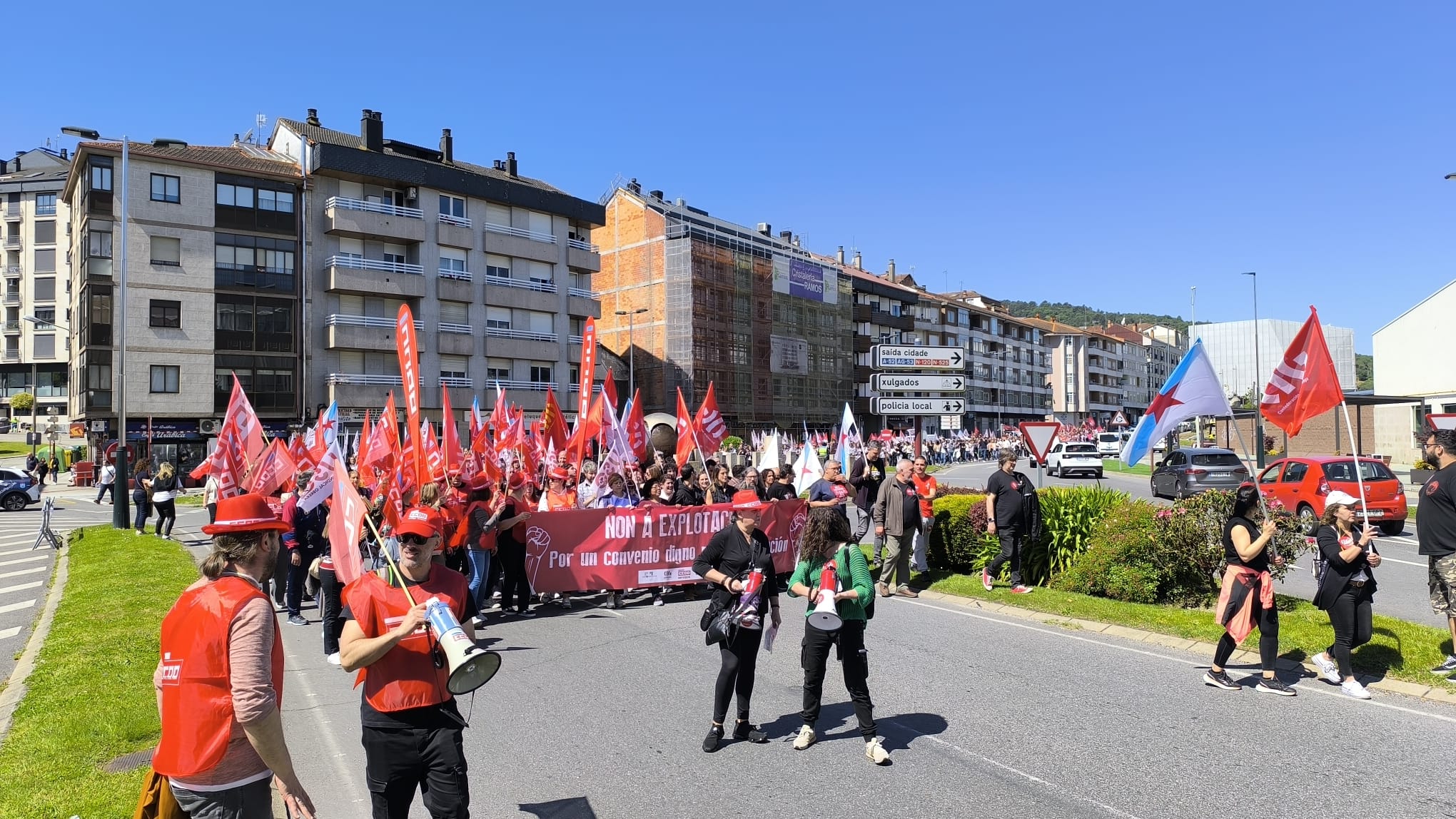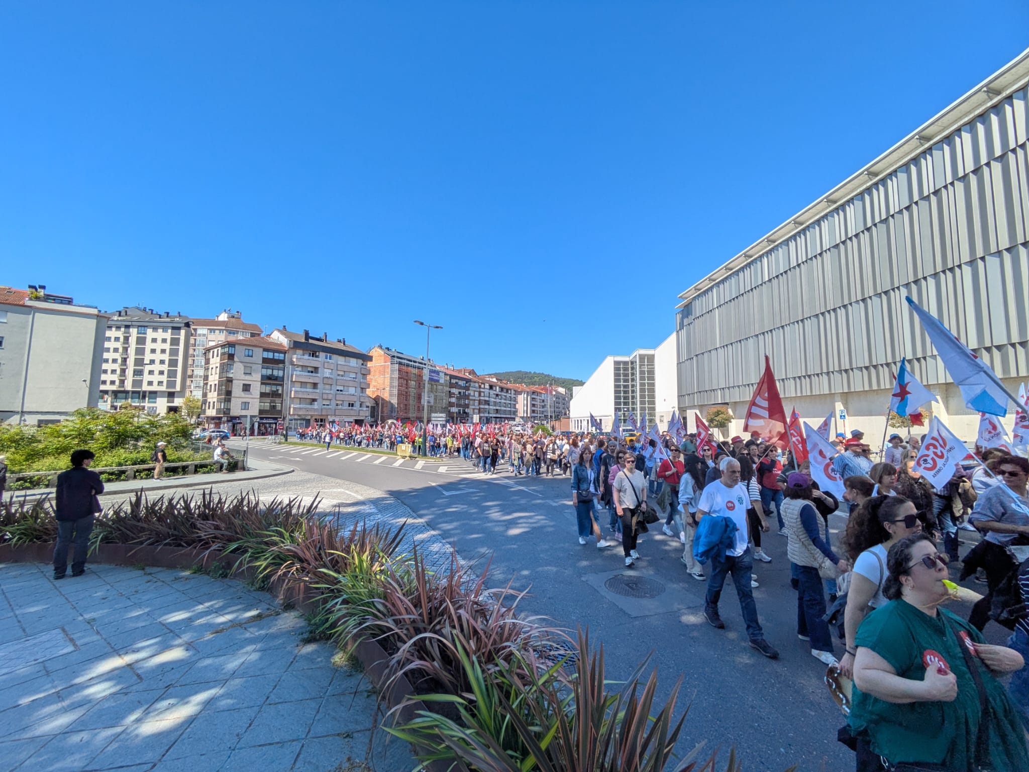 Ao mediodía tivo lugar unha multitudinaria manifestación na cidade, na que participaron máis de 1500 persoas ao berro de “Queremos negociar e non mendigar” e “O voso beneficio, o noso sacrificio”.