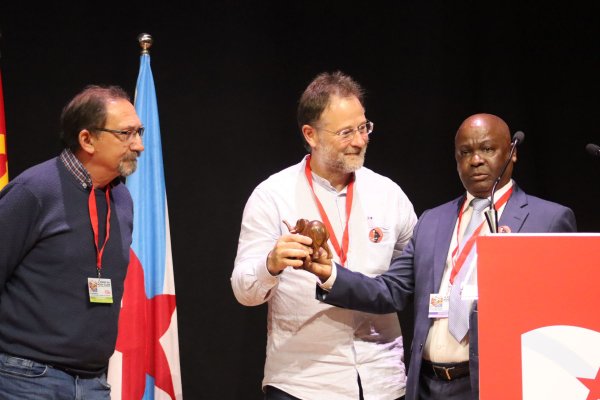 Despois da elección da mesa presidencial do Congreso e previamente a votar o Relatorio de Organización e as modificacións estatutarias, tomaron a palabra algunhas das delegacións convidadas. Na sesión da mañá, interviñeron Pierpaolo Leonardi, responsábel da FSM en Europa e de L'Unione Sindacale di Base de Italia (USB); Jeremias Duzenta Timana, pola Comunidade Sindical dos Países de Lingua Portuguesa (CSPLP); Adilson Araújo, presidente da Central dos Trabalhadores/as do Brasil (CTB); Adolfo (Fito) Aguirre, responsábel de Relacións Internacionais da Central de Traballadores/as Arxentinos/as Autónoma (CTA-A); Leobanys Ávila Góngora, membro do Secretariado Nacional da Central de Traballadores/as de Cuba (CTC); e Beatríu Cardona, voceira da Intersindical Valenciana (IV).