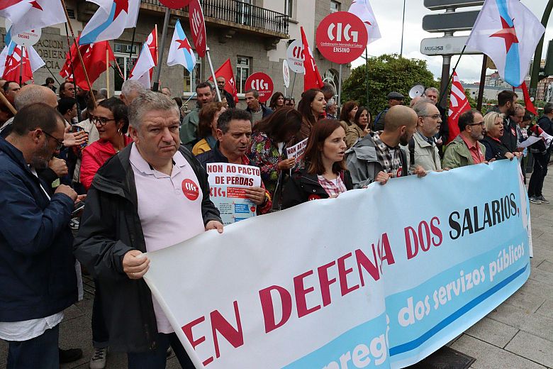 Delegados e delegadas da Área Pública da CIG (Administración Pública, Ensino e Saúde) concentráronse na mañá deste xoves na Delegación do Goberno na Coruña en rexeitamento ao "pacto de perdas" que o Goberno español e os sindicatos CCOO e UGT veñen de acordar e que suporá que o persoal empregado público perda arredor dun 10% do seu poder adquisitivo nos próximos tres anos.