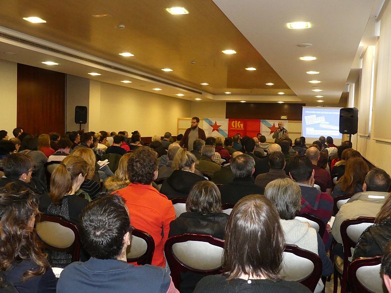 En todo caso, Carril lembrou a intensa campaña desenvolvida pola CIG ao longo do ano 2017 pola recuperación dos dereitos laborais e sociais. Unha campaña que ten continuidade este ano, no que xa viviron potentes mobilizacións como as protagonizadas o 8 de marzo polas mulleres traballadoras galegas; a loita que sosteñen desde hai máis de dous meses as traballadoras e traballadores de Xustiza; as folgas previstas no sector de ambulancias ou aquelas consecuencia da negociación colectiva. Todas elas “exemplos de dignidade” contra a crise e contra os efectos das políticas do PP: reformas laborais, reformas da negociación colectiva ou das pensións.