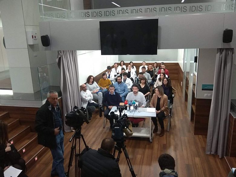 Na rolda de prensa foron Paula Cerezo, presidenta do Comité de Empresa da Fundación Biomédica de Galiza Sur; Alejandro Lamelo, presidente do Comité de Empresa da Fundación Profesor Novoa Santos e Ezequiel Álvarez, presidente do Comité de Empresa da Fundación Instituto de Investigación Sanitaria de Santiago de Compostela quen deron conta da actual situación en representación da Plataforma Galega de Traballadores e traballadoras de Investigación Sanitaria (PLAGTIS), que engloba a gran parte do colectivo investigador e de xestión a nivel hospitalario en Galicia.