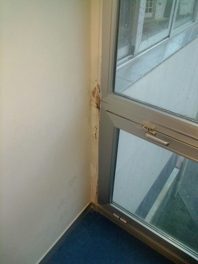 Nas imaxes que acompañan esta nota pódese apreciar como se ennegreceron as paredes da oficina pola humidade, os avultamentos da pintura á causa da mesma ou como escorrega a auga por unha esquina. Ademais, engaden dende CIG-Xustiza, o mal illamento das fiestras non só fai que as estancias estean frías, senón tamén xera problemas de humidades arredor dos marcos (tal e como se ve na fotografía correspondente á fiestra dun corredor).
