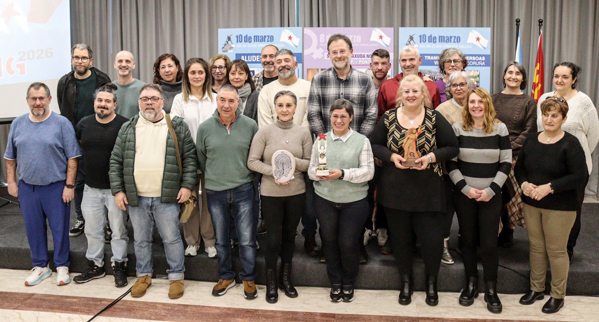A CIG celebrou o 13 de marzo en Compostela o acto de entrega dos Premios 8 e 10 de Marzo, cos que quere recoñecer as loitas recentes máis significativas para a clase obreira galega. Nesta ocasión, o Premio 8 de Marzo foi para as traballadoras do SAF de Ponteareas, que durante 68 días sostiveron unha folga en defensa dos seus dereitos e por unha atención digna ás persoas usuarias.