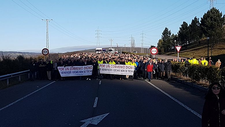 Fronte a esta medida da empresa, centos de persoas manifestáronse este venres dende a Praza do Hospital das Pontes até as portas da central térmica, en defensa dun convenio digno e dos dereitos adquiridos e para alertar do impacto que terá unha medida deste calado na comarca. Na entrada das instalacións sumáronse á protesta os traballadores e traballadoras da térmica, que hoxe desenvolveron un paro laboral de media hora.
