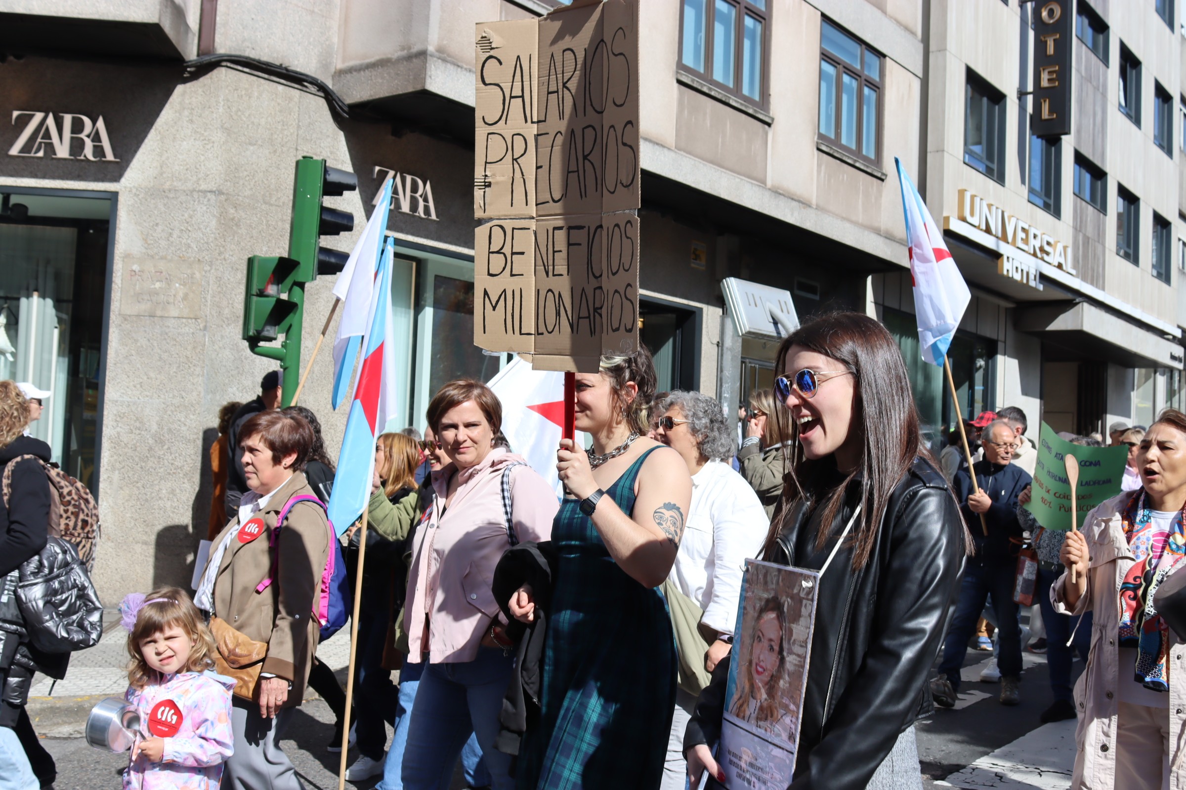 Beatriz Fernández, traballadora da residencia DomusVi de Ferrol, describiu as condicións laborais como “nefastas e frustrantes”. “Estamos baixo mínimos, cunha falta de persoal brutal que nos sobrecarga física e mentalmente. A xente non quere vir traballar nestas condicións, e isto impide ofrecer a atención digna que merecen as persoas residentes. Non podemos estar cobrando por debaixo do SMI, é unha vergoña. Durante a pandemia aplaudíannos, pero agora non queremos aplausos, queremos salarios dos que poidamos vivir”, afirmou.
