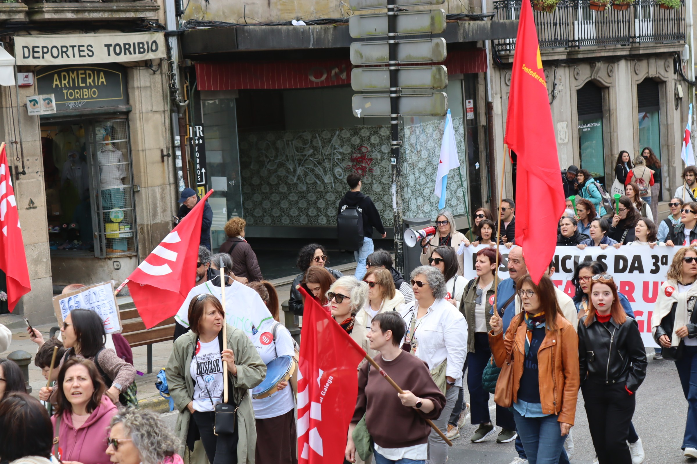 No manifesto criticaron tamén a “traizón” de CCOO e UGT, que en 2022 asinaron un preacordo cunha dobre escala salarial, que foi rexeitado tras 28 días de folga convocada pola CIG. “O 6,5% non se negocia!”, proclamaron, referíndose á loita por incrementos salariais segundo o IPC e exixiron que a Xunta asuma a xestión directa do servizo e garanta salarios e condicións laborais xustas.
