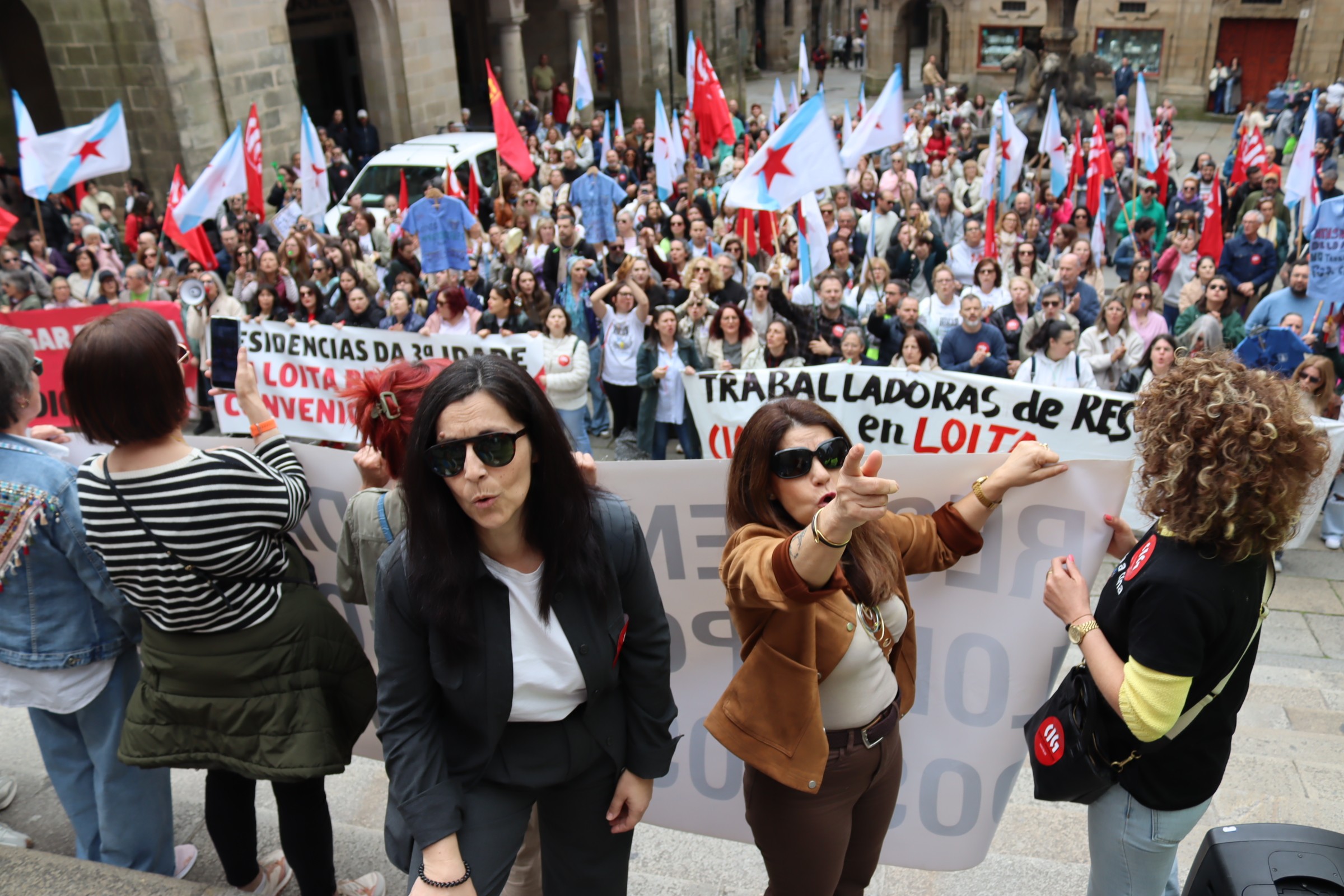 A manifestación rematou coa lectura de 3 manifestos na Praza de Praterías. O primeiro, en nome das traballadoras das residencias, denunciou que “mentres poñemos toda a nosa enerxía para coidar as persoas residentes, a patronal e a Xunta precarizan as nosas vidas cunhas condicións laborais que son máis do tempo da escravitude que do século XXI”.