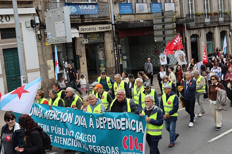 En apoio ás traballadoras participou tamén na manifestación o Colectivo de Persoas Xubiladas e Pensionistas da CIG que deron lectura a un terceiro manifesto no que denunciaron os atrasos, tanto nas valoracións como na concesión de axudas ou servizos, e reclamaron un Sistema Público Galego de Atención ás Persoas.