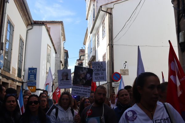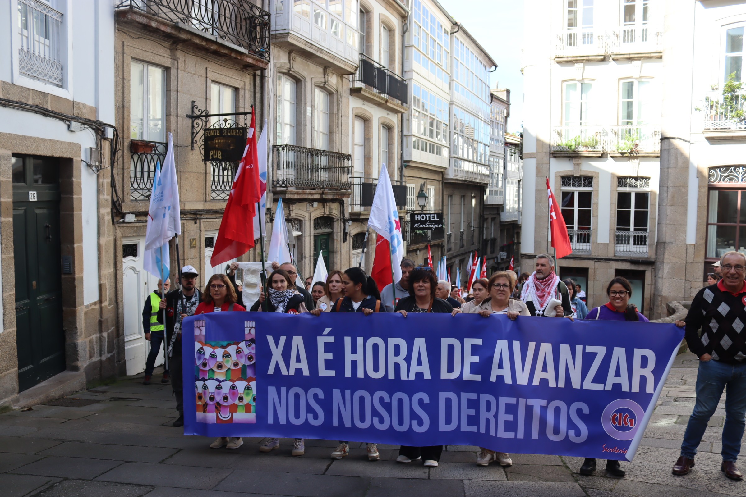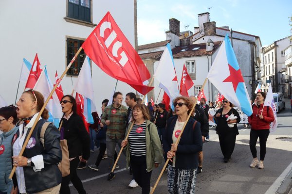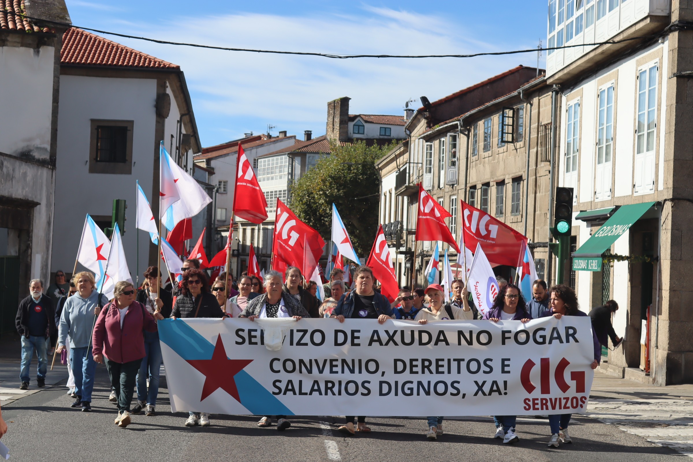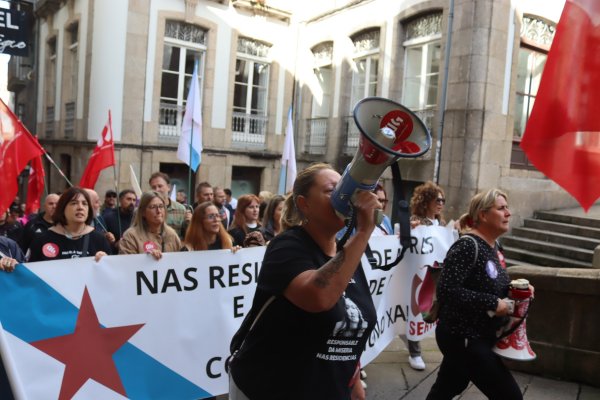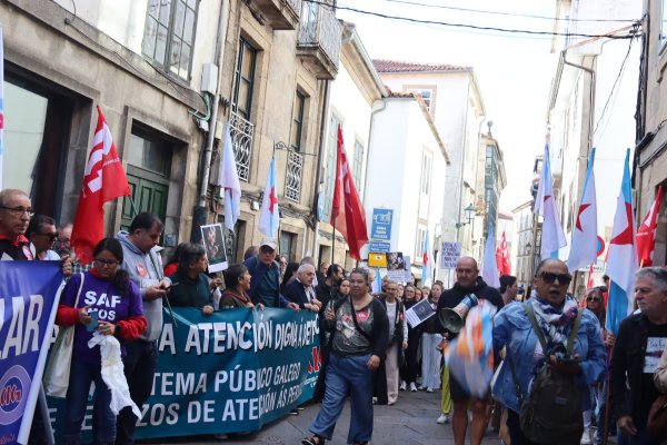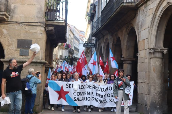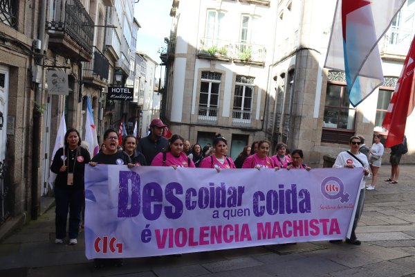 As traballadoras do sector de coidados -Residencias, Centros de Día e SAF- percorreron esta mañá as rúas de Compostela para denunciar a precariedade laboral e salarial que padecen, na primeira das novas xornadas de folga á que están convocadas. Mañá manifestaranse polas rúas de Vigo. O secretario nacional da CIG-Servizos, Carlos Arján, considerou “indecente” que o Presidente da Xunta, Alfonso Rueda, botara “balóns fóra” na sesión de control do Parlamento de Galiza.