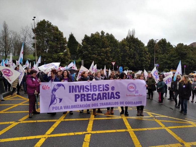 A loita pola valorización dos traballos de coidados iniciouse xa o pasado xuño e ademais deste 8 de Marzo, centrou as reivindicacións da secretaría das Mulleres da CIG o 25 de novembro e terá continuidade nos vindeiros meses porque, tal e como explicou a secretaria das Mulleres, Margarida Corral, “consideramos urxente dar unha resposta á explotación, invisibilización e á desigualdade”.
