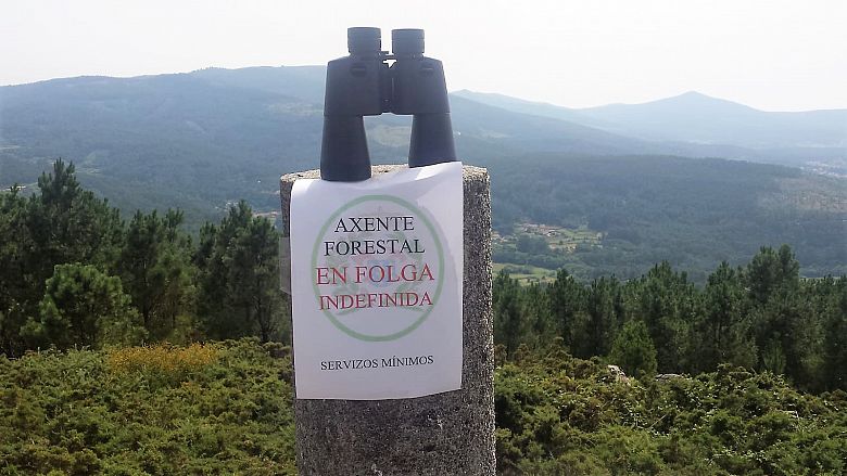 Os axentes forestais e ambientais da Xunta que están en folga indefinida dende o pasado día 1 de agosto para reclamar un acordo laboral que permita mellorar as súas condicións de traballo continúan a desenvolver accións reivindicativas, de reparto de información e de solicitude de apoio dos grupos parlamentarios da oposición para visibilizar un paro marcado por uns servizos mínimos do 100%.