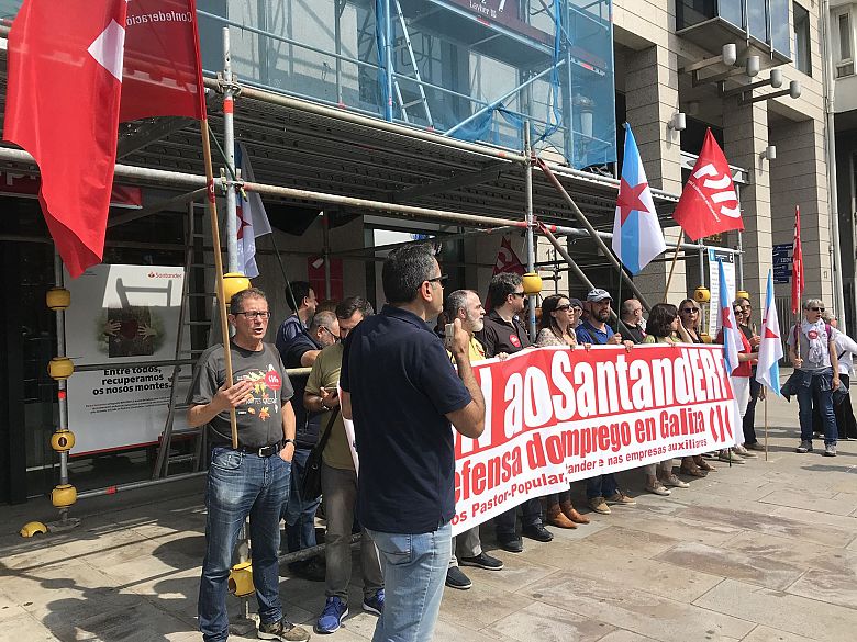A CIG realizou este xoves unha concentración diante dunha oficina do Banco Santander na Coruña en protesta polas presións que a entidade esta a exercer sobre o persoal para "instalo" a que se adhira ao ERE, incumprindo así o compromiso de respectar a voluntariedade como principio fundamental da adscrición. Pero ademais, dende a sección sindical advirten que xa se está a preparar un novo recorte de emprego en Galiza, pois o Santander ten intención de pechar o centroOrillamar e despedir as súas 41 traballadoras e traballadores.
