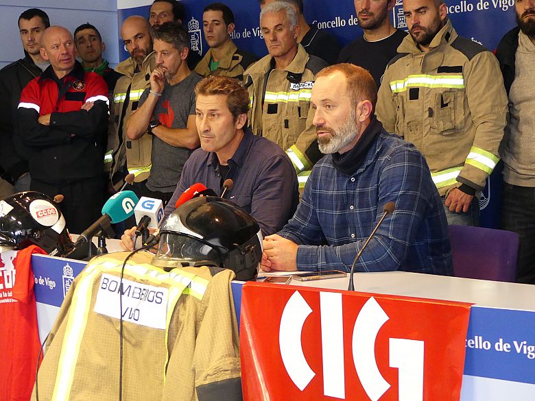 Representantes sindicais da CIG e CCOO nos bombeiros/as do Concello de Vigo ofreceron hoxe unha rolda de prensa para denunciar o “despropósito” do exame teórico das oposicións celebradas o pasado domingo, que incluíu preguntas sen relación co temario nin co posto de traballo en cuestión. Entenden que a proba debera repetirse “por coherencia” e agardan que o tribunal atenda o máis dun cento de reclamacións individuais e colectivas presentadas polos/as afectados/as co apoio das dúas centrais.