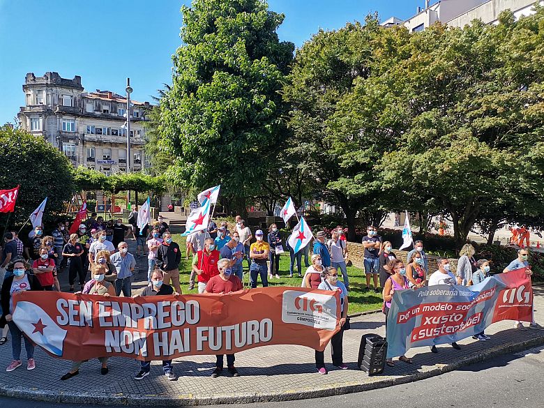 A CIG concentrouse este mércores nas sete cidades galegas en rexeitamento ao segundo acordo asinado polo Goberno español, a patronal, CCOO e UGT para a prórroga dos ERTE, mentres seguen plenamente vixentes as reformas laborais, das pensións e da negociación colectiva ou os recortes nas prestacións por desemprego e os servizos públicos. Por iso, a CIG reitera que este acordo, plasmado no Real Decreto Lei 24/2020 que hoxe se convalidou no Congreso dos Deputados/as, supón afondar no abuso patronal e un enorme prexuízo para o conxunto dos traballadores e das traballadoras.