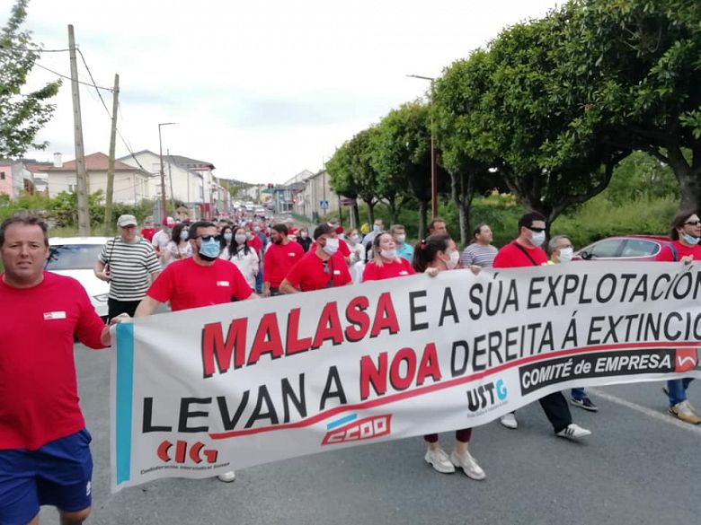 "O único compromiso de Malasa, aseveraron, é coa idea de que o seu persoal ten que ser dócil e mal pagado e de manter a precariedade e de incumprir sistematicamente a lexislación laboral máis básica". Fronte a isto, as traballadoras e os traballadores de Noa sinalaron que ela e eles si son un exemplo de compromiso "na defensa dos nosos dereitos, do emprego e co futuro das nosas familias e desta comarca tan maltratada na que vivimos e na que queremos seguir vivindo".