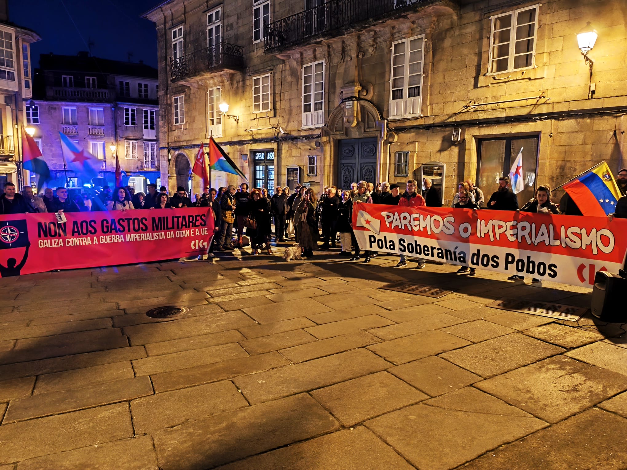 Fronte a quen apoia unha escalada da confrontación e a guerra, o pobo galego ten demostrado nos últimos meses que é capaz de se colocar do lado correcto e á altura das circunstancias. Hoxe, como coa Palestina, chamamos a manter esa voz alta e clara: non ao imperialismo, non á guerra e non ao silencio cómplice.