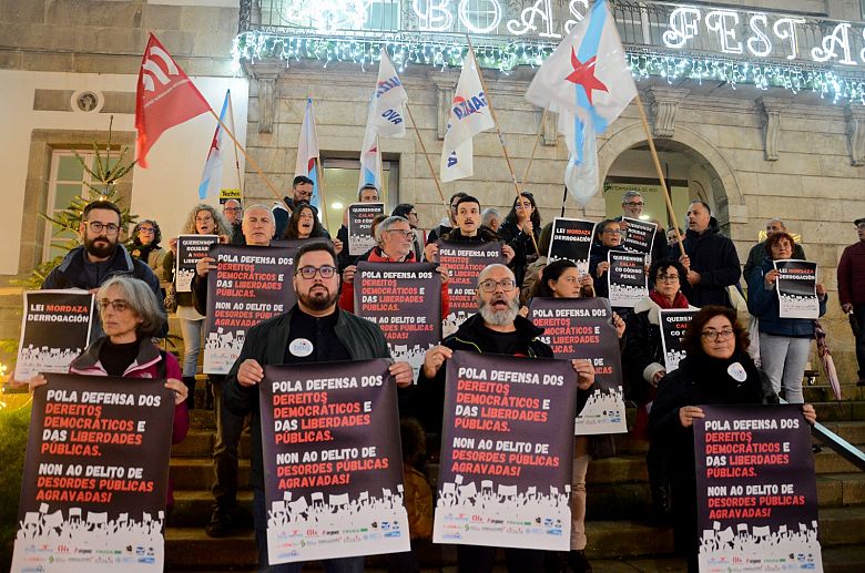 Centos de persoas concentráronse diante da Delegación do Goberno, na Coruña; das Subdelegacións do Goberno en Lugo, Ourense e Pontevedra; na praza Amada García, en Ferrol, diante do Marco, en Vigo na praza Roxa de Compostela, para manifestar o seu rexeitamento á criminalización da protesta social, co endurecemento do delito de desordes públicas e en defensa dos dereitos democráticos e das liberdades públicas.