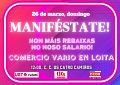 Centos de traballadoras e traballadores do comercio manifestáronse este domingo polas rúas da Coruña para reclamar un convenio digno, con subas salariais xustas e melloras nos dereitos laborais e sociais. A marcha saíu do centro comercial Catro Camiños, percorreu as céntricas rúa Juan Flórez, Praza de Lugo e Rúa Real para rematar na rúa Bailén (a altura dos antigos cines París), onde se procedeu á lectura dun manifesto.