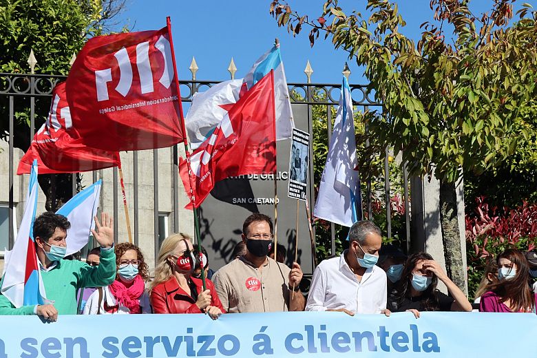 “A Xunta de Galiza, o Partido Popular, non só non fixo nada para evitar os peches de oficinas por parte de Abanca, senón que os subvenciona destruíndo os nosos postos de traballo”, denunciou no decurso da mobilización Clodomiro Montero, quen lembrou que este mesmo ano “Feixó, a parte da subvención por pechar oficinas, regaloulle ao banco unha Universidade Privada e a xestión dos Fondos europeos Next Generation”.