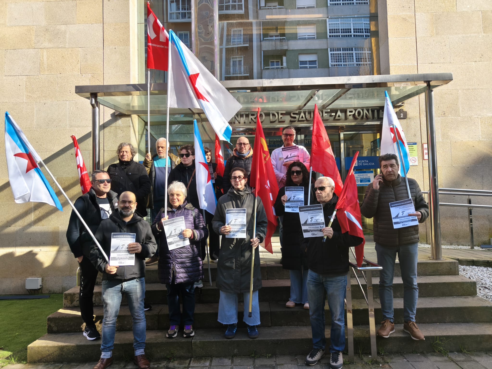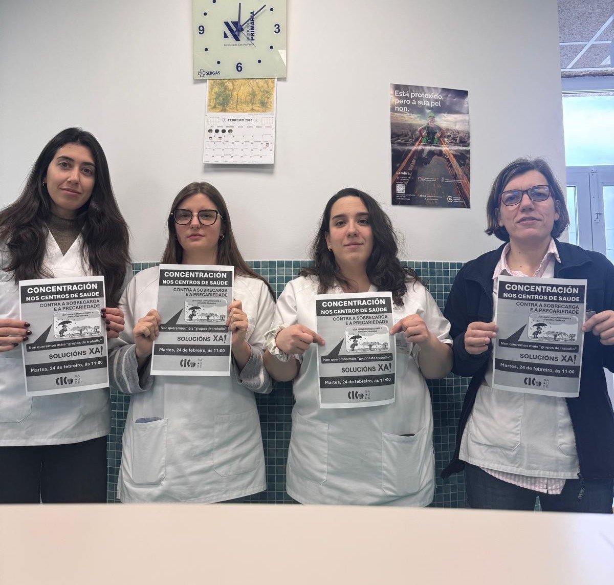 Traballadores e traballadoras da Atención Primaria concentráronse este martes diante de numerosos centos de saúde e PAC de todo o país para exixir medidas que garantan as calidade asistencial e unhas condicións laborais dignas. Nas protestas, convocadas pola CIG-Saúde, anunciouse tamén a convocatoria de folga neste ámbito para o vindeiro 12 de marzo ante a falta de respostas efectivas por parte da Consellaría de Sanidade.