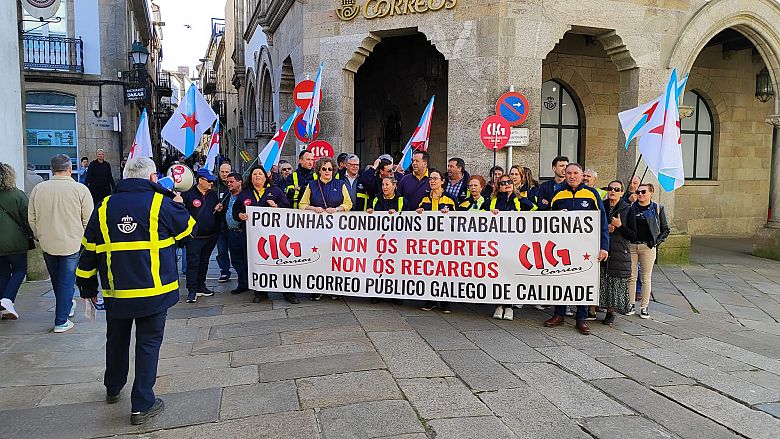 CIG-Correos concéntrase na oficina principal de Compostela para denunciar a sobrecarga e os recortes na entidade