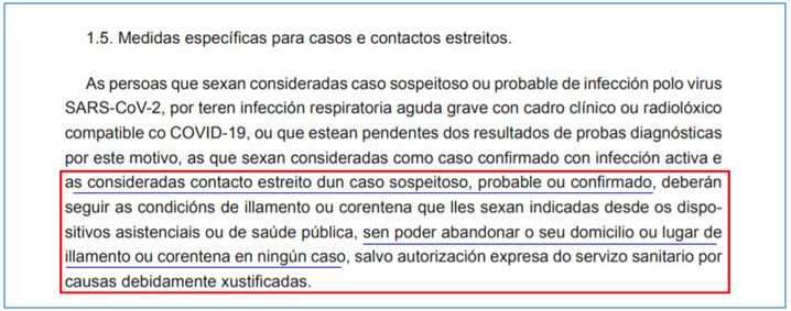 Na Orde pola que se establecen medidas de prevención específicas como consecuencia da evolución da situación epidemiolóxica derivada do COVID-19 na Comunidade Autónoma de Galicia di textualmente o seguinte: