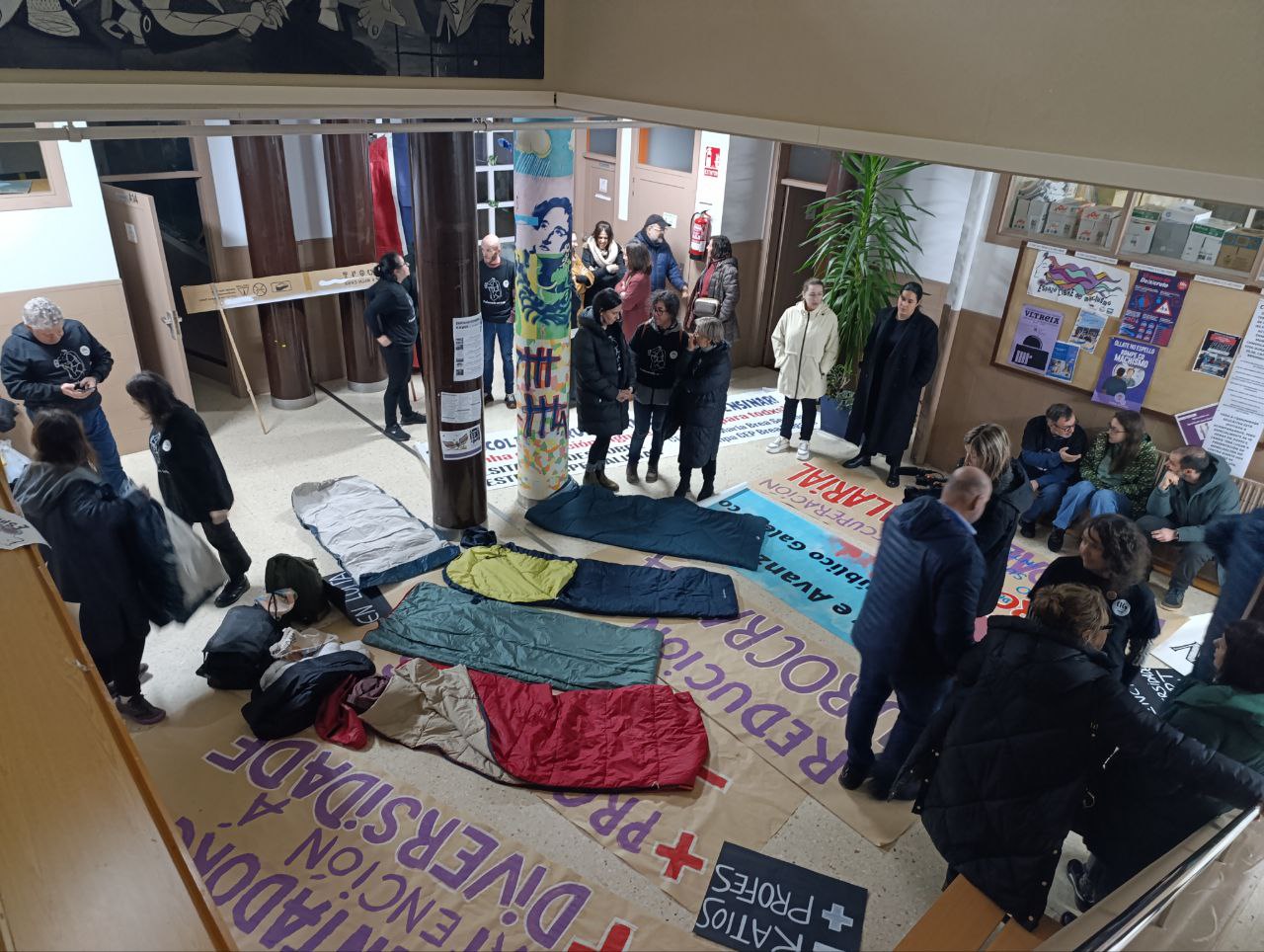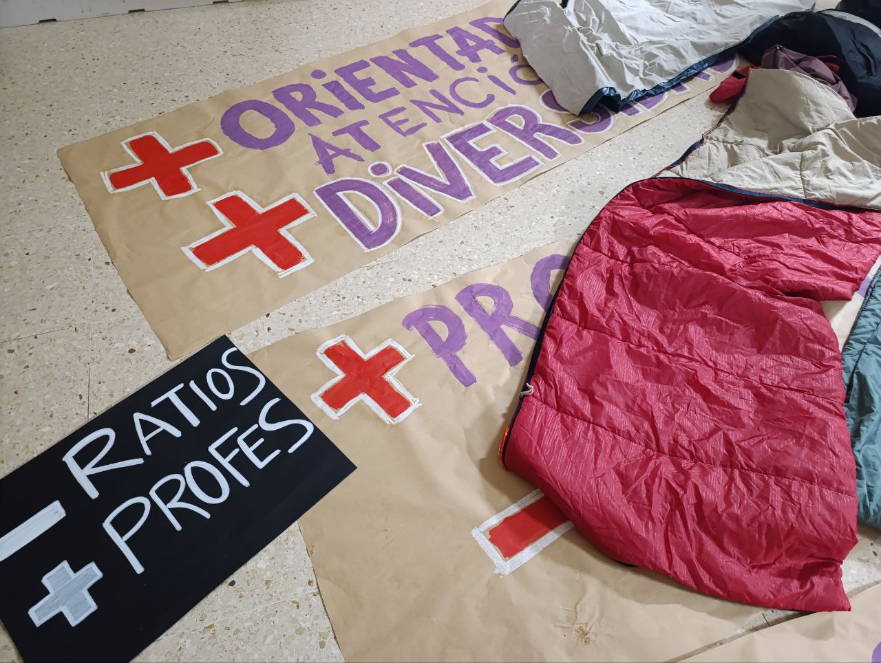 Despois de pasar a noite durmindo nos tres centros, na mañá deste venres leváronse a cabo concentracións á entrada das clases para continuar con esta visibilización social.