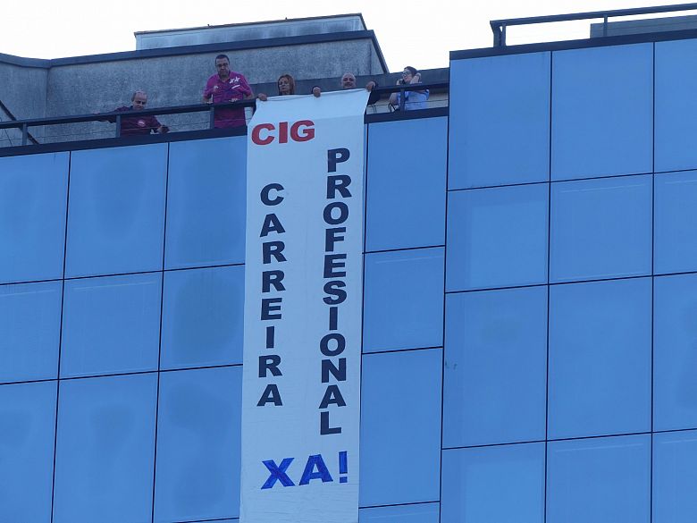 A CIG-Saúde de Compostela descolgou unha pancarta na fachada do Hospital Clínico en demanda da recuperación da carreira profesional, un dereito que foi paralizado coa chegada de Feixóo ao goberno da Xunta de Galiza. A acción insírese na campaña que se vén desenvolvendo en toda Galiza pola recuperación dos dereitos laborais, salariais e sociais que foron arrebatados ao persoal da sanidade pública galega so pretexto da crise.
