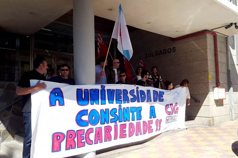 A CIG realizou esta mércores unha concentración diante dos xulgados de Ferrol coincidindo coa celebración dun dos xuízo contra Pregecsa, a empresa que resultou adxudicataria do contrato dos servizos auxiliares da Universidade da Coruña, que non subrogou a 12 traballadoras e traballadoras (5 do campus de Ferrol e 7 da Coruña) que viñan prestando este servizo dende hai anos.