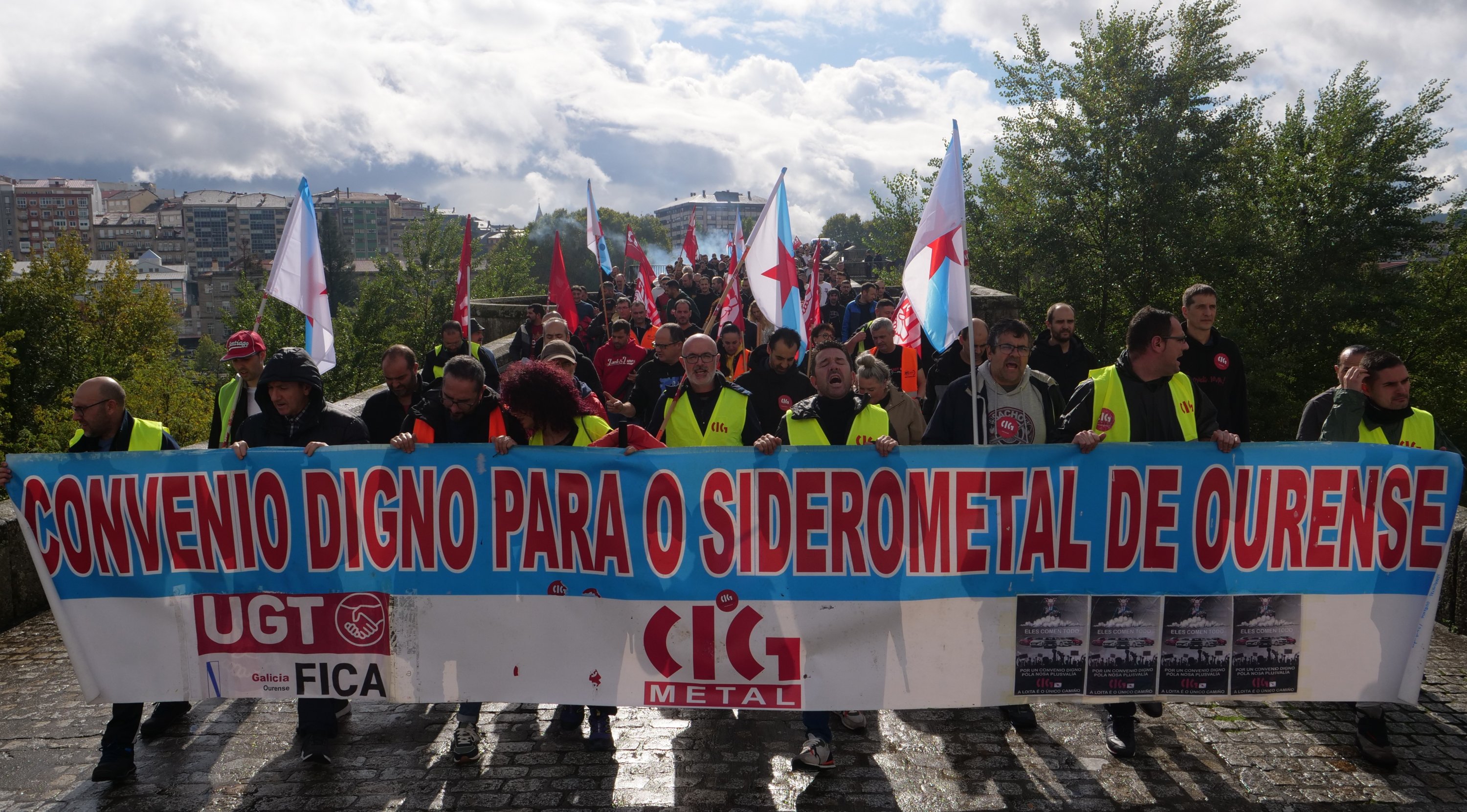 O sector do siderometal da provincia de Ourense viviu hoxe a segunda xornada de folga das tres convocadas no mes de novembro para reclamar un convenio colectivo digno, tras o fracaso das negociacións mantidas coa patronal o luns. Centos de persoas traballadoras percorreron as rúas da cidade en defensa das súas condicións laborais, mobilizacións que repetirán mañá coincidindo co último día de paro previsto por agora.
