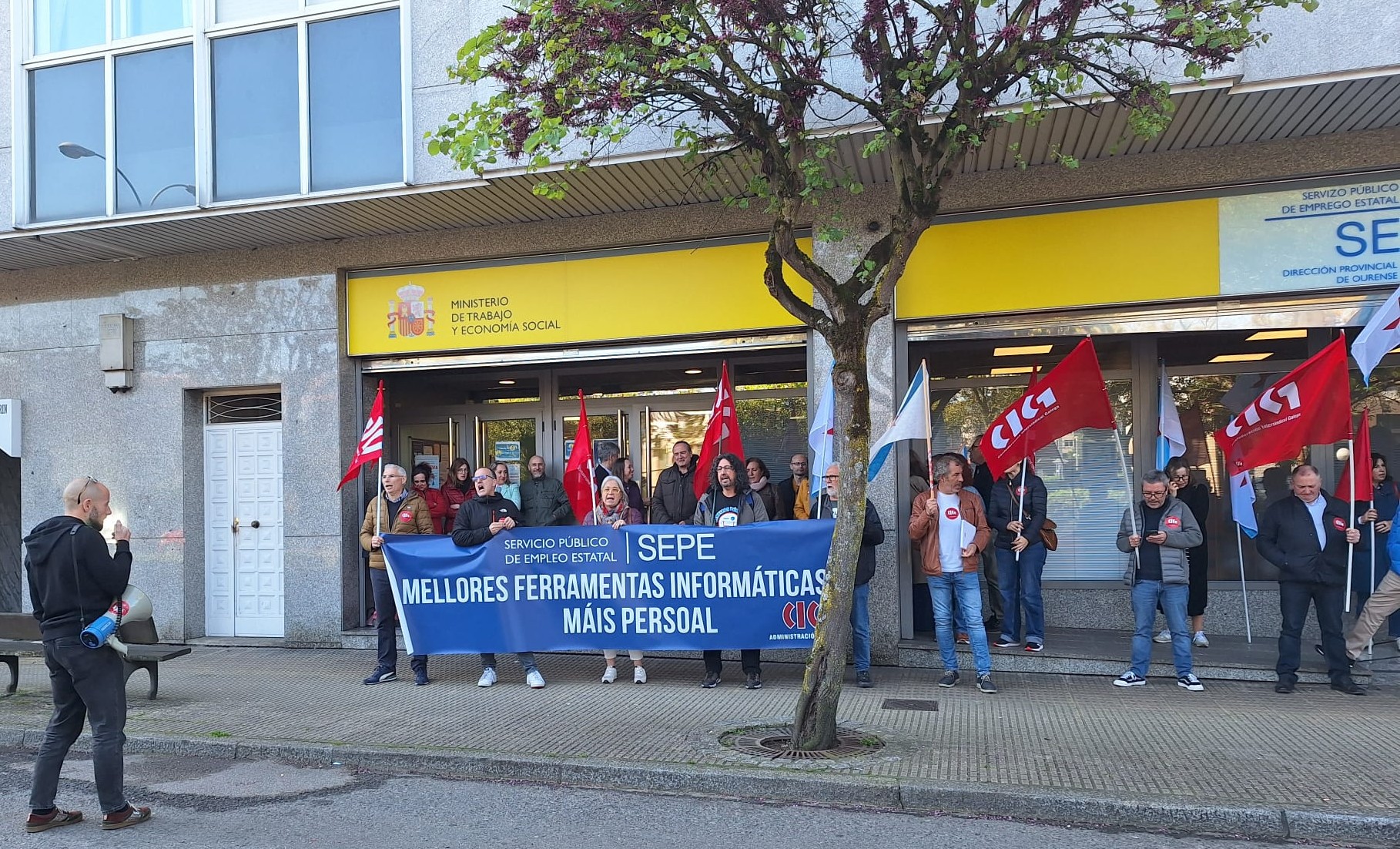 Persoal do Servizo de Emprego Público Estatal (SEPE) continuou hoxe en Ourense coa campaña de mobilizacións convocada pola CIG-Administración para denunciar a situación de colapso na que se atopa o organismo e reclamar máis persoal e a revisión urxente da nova aplicación informática mediante a que se tramitan as prestacións.