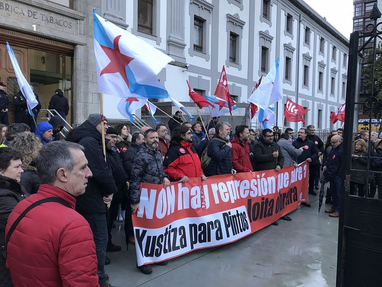 Hoxe tivo lugar a terceira sesión do xuízo que se segue contra o compañeiro Xesús Anxo López Pintos (ex secretario comarcal da CIG de Ferrol) a quen lle piden unha condena de tres anos pola súa participación nunha mobilización do persoal do naval e de Poligal en 2012. Con tal motivo, ducias de delegados e delegadas da CIG volvéronse concentrar diante da Audiencia Provincial da Coruña en demanda de xustiza para Pintos e contra os intentos de criminalizar e reprimir a loita obreira.